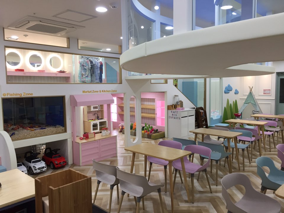 Cafe de Enfant in Yongsan is a cafe designed with families in mind, particularly those with young children looking for a safe and tidy play environment within the city. Nestled on the fourth floor of the Dae-A building near Namyeong Station, it offers parents a convenient spot to unwind while their little ones have a decent chunk of space to play and explore, typically for a couple of hours.